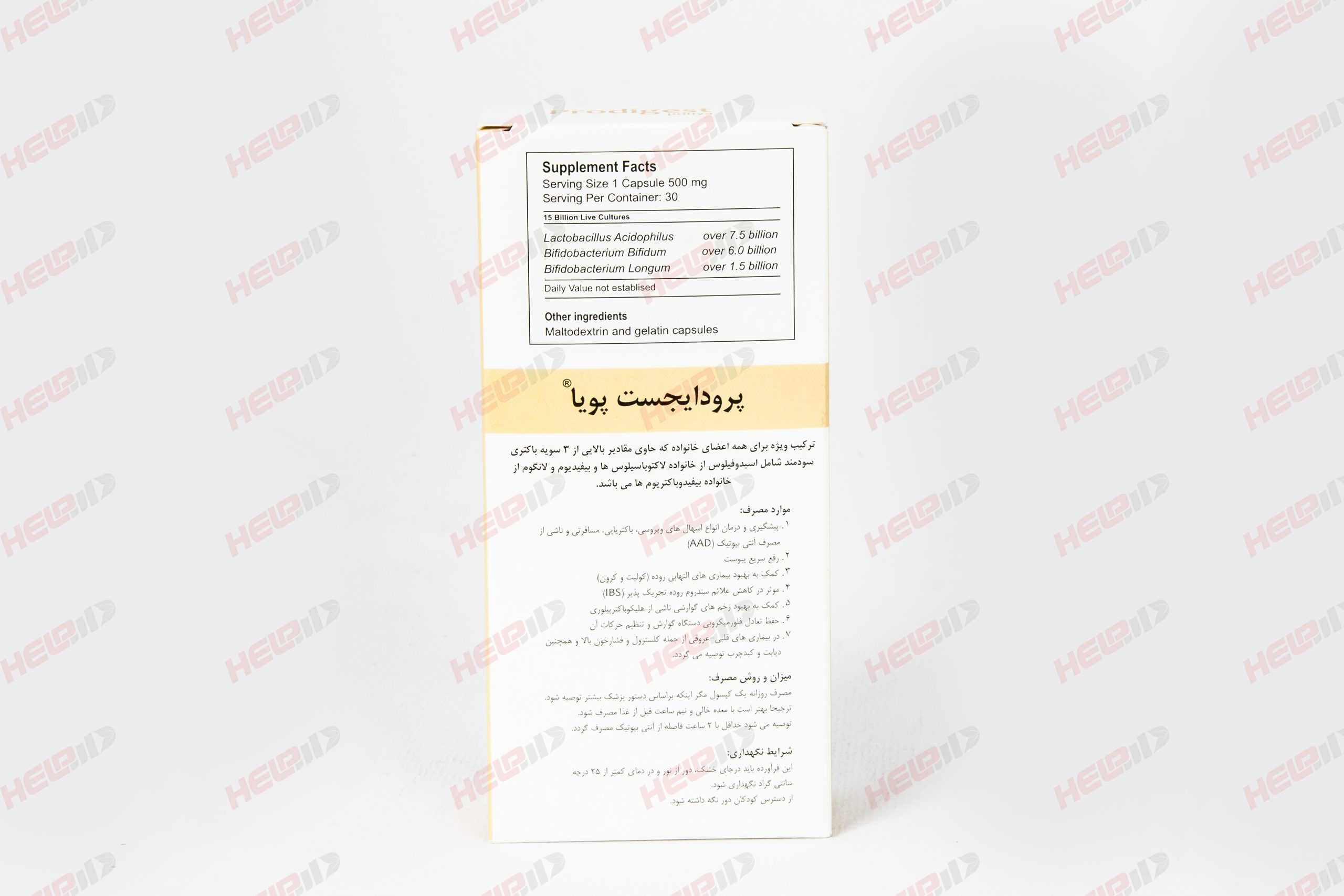 کپسول پرودایجست گسترش میلاد فارمد یکی از محصولات دارویی است که دارای فراورده های پروبیوتیک است. این مکمل مفید حاوی مقادیر بالایی از پروبیوتیک ها است که مجموعه مواد تشکیل دهنده آن از شرکت معتبری در آمریکا تهیه میشود. مواد اولیه مرغوبی که از شرکت آمریکایی مورد نظر تهیه میشود، با فرمولی خاص و منحصر به فرد با یکدیگر ترکیب میشوند. این ترکیب دارویی فوق العاده نیازی به دمای سرد یخچال ندارد بلکه در محیط نیز قابل نگهداری است. زیرا مواد اولیه مرغوب این دارو در دمای محیط تخریب نمیشود.