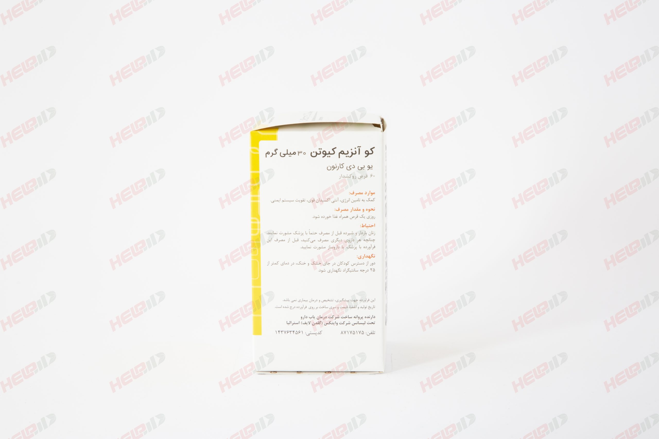 مهم ترین ترکیب به کار رفته در این قرص کیوتن می باشد. میزان این ترکیب 30 میلی گرم در هر کپسول می باشد که اساس تعیین این مقدار بر پایه میزان نیاز روزانه است.