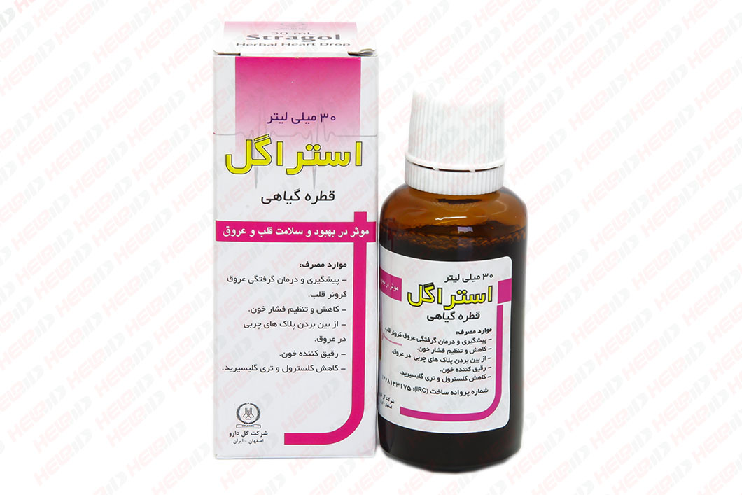 قطره استراگل گل دارو به عنوان یک قطره گیاهی بسیار عالی برای کاهش عوارض ناشی از بیماری های قلبی و عروقی مورد استفاده قرار می گیرد. این قطره با داشتن عصاره زالزالک، عصاره بابونه، قره قات و … نقش موثری در کاهش جریان خون در بدن دارد. عصاره سیر موجود در این قطره، باعث کاهش چربی خون شده و در درمان فشار خون بالا به همراه ترکیبات دیگر نقش موثری را ایفا می کند.