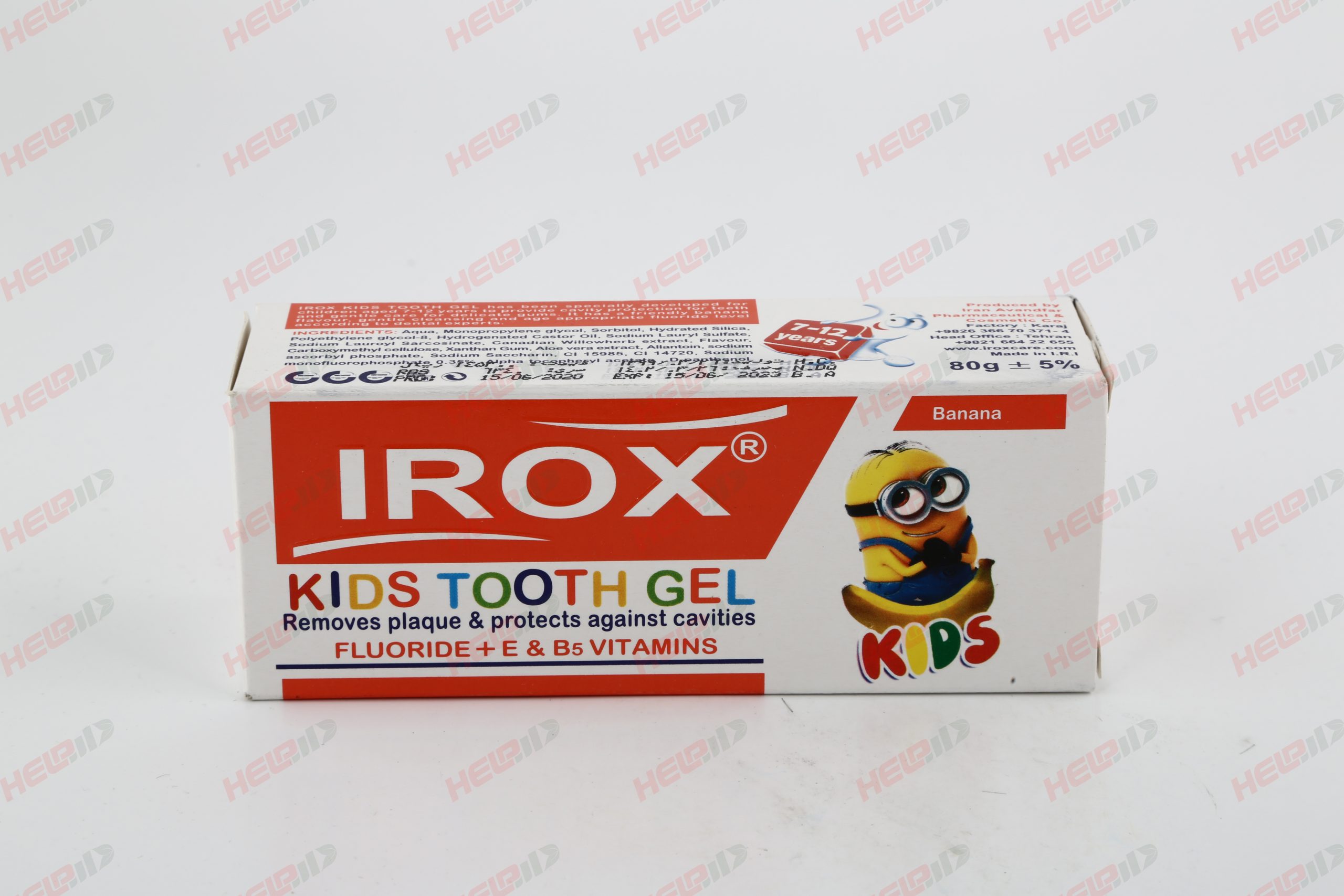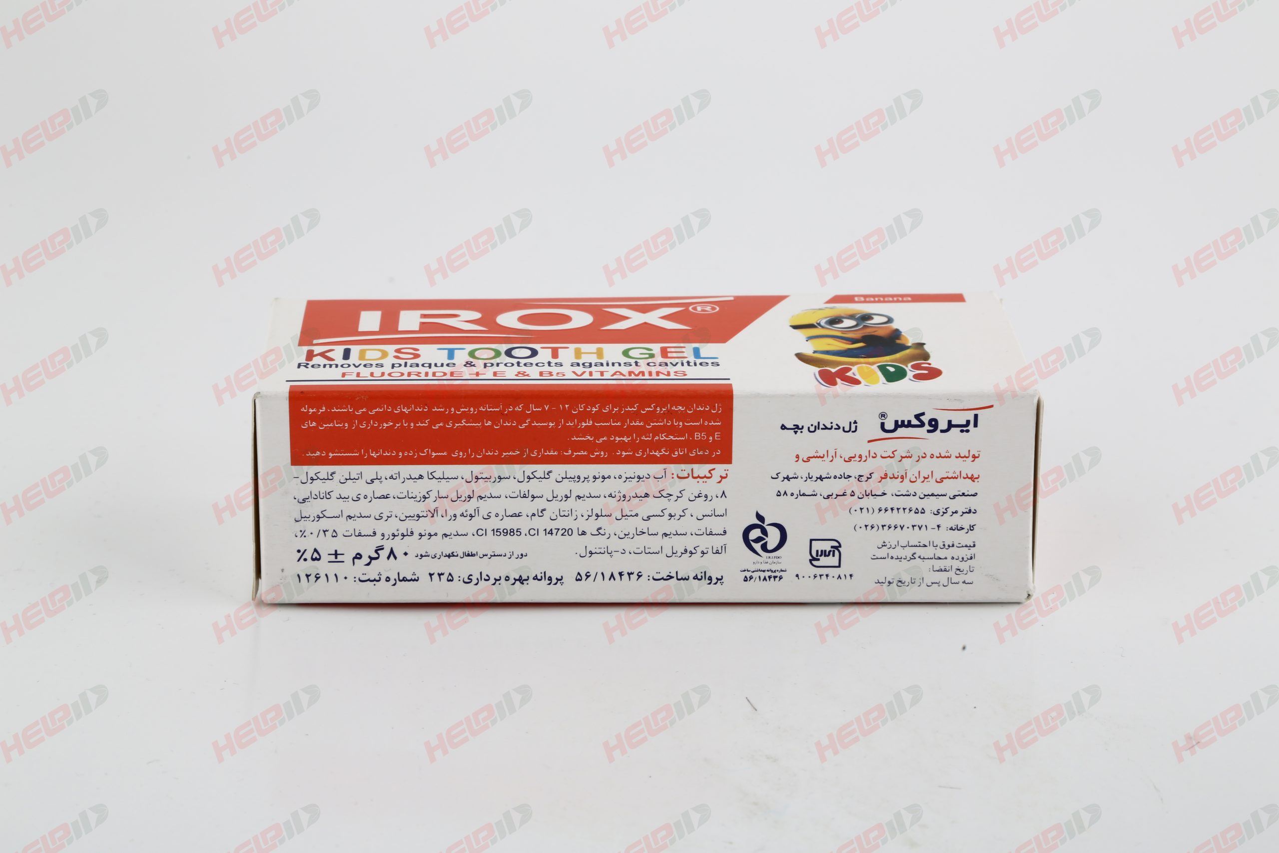 ژل دندان بچه موزی ایروکس Kids Tooth Gel Banana  حاوی فلوراید است که این ماده  محافظت از دندان در برابر پوسیدگی است و می تواند طول عمر دندان ها را افزایش دهد و همچنین حاوی ویتامین E و B5 بهبود استحکام لثه و دارای خاصیت  پاکنندگی و سفید کنندگی دندان هاست  ضد پلاک و   مناسب برای سنین 7 تا 12 سال می باشد ژل دندان بچه  ایروکس با رایحه موز است