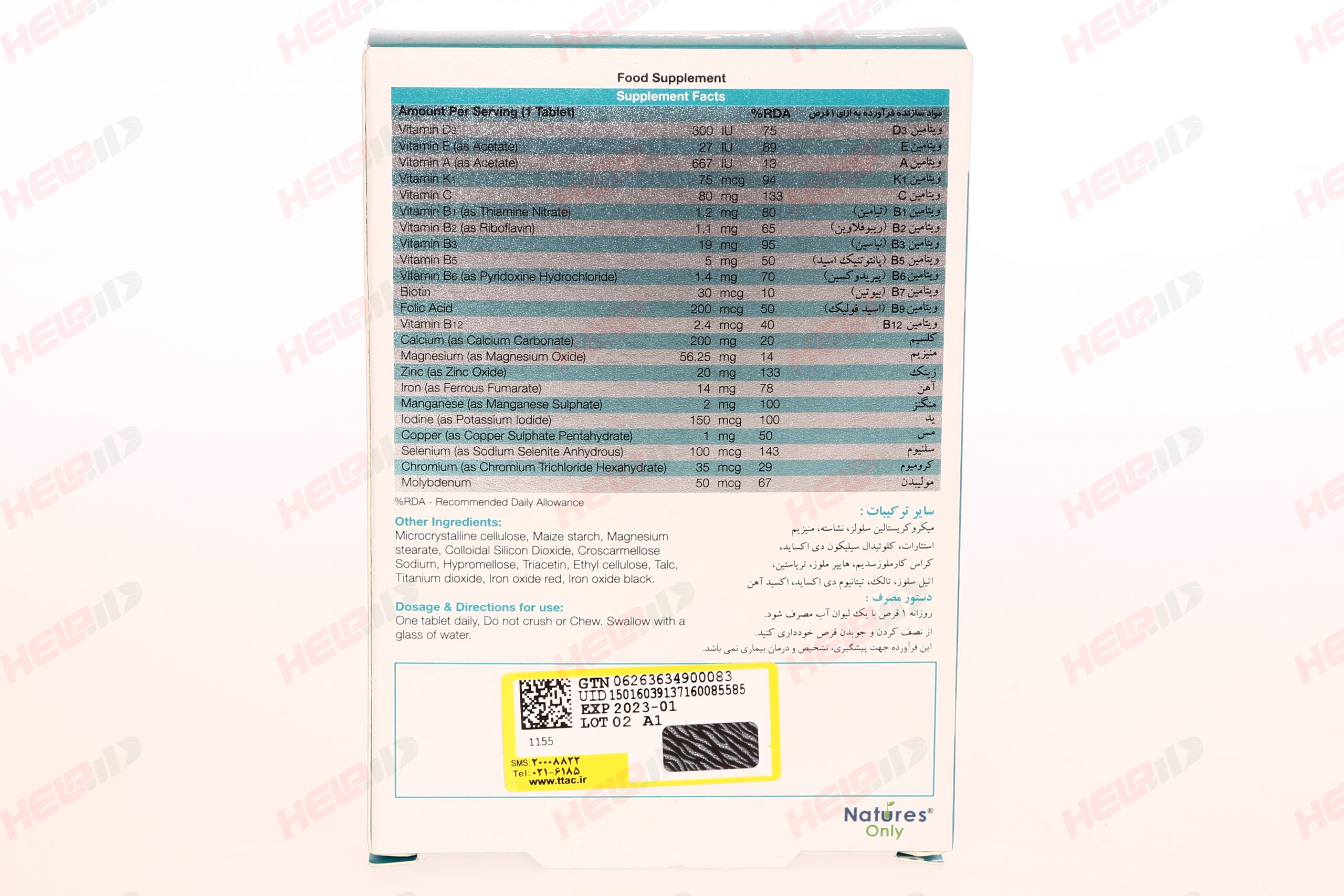 | نام ترکیب | مقدار در 1 عدد قرص | درصد نیاز روزانه |